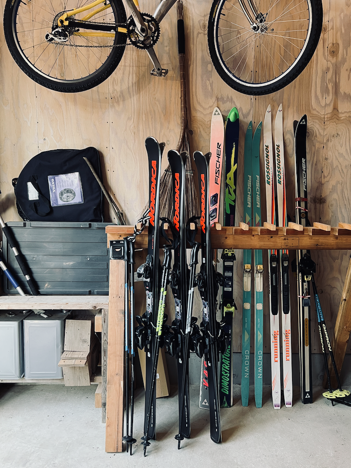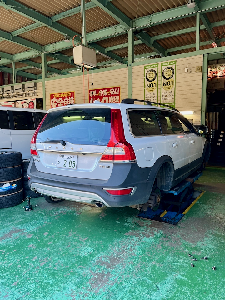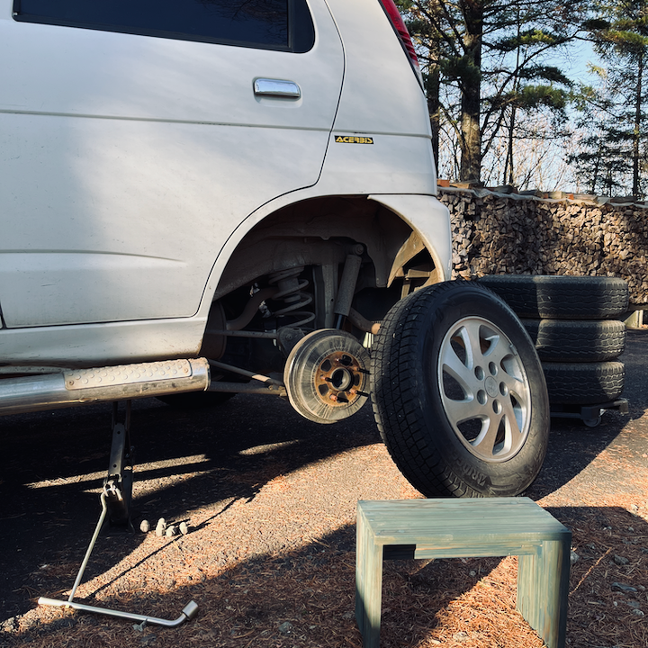 ガレージからスタッドレスタイヤ装着済みのホイールを出して、テリオスキッドのタイヤ交換。