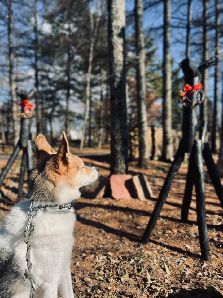 そういえば前回、トナカイ(のような何か)たちはクリスマス仕様となっています。本日は M さん宅まで丸太をいただきに行きました。