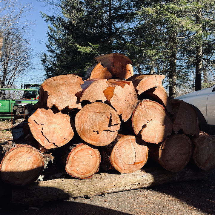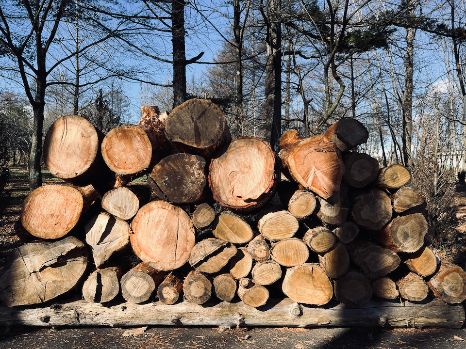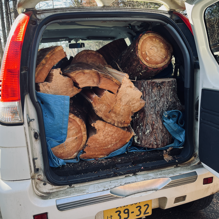 最初に昨日いただいてきた丸太をクルマから降ろして、
