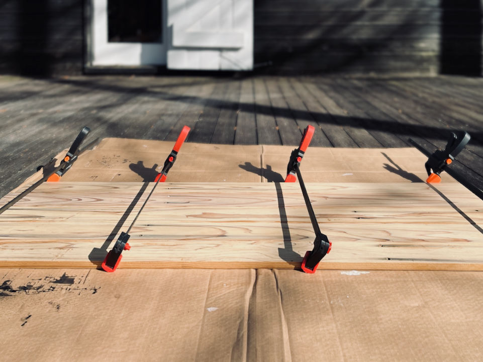 座面と背面用の板を接着中。その間に大泉「こぱぞう」で昼食。