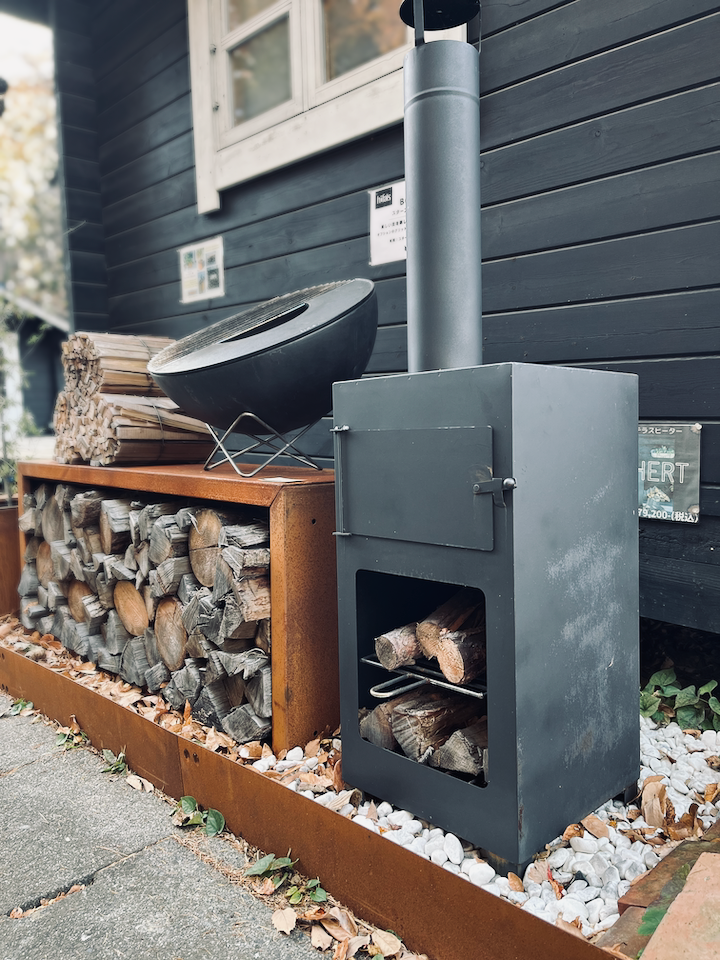 その後、dld 八ヶ岳ショールームに行ってトーチセットをいただく。生活のヒントをいくつか盗撮。気が利いてる(しかしとても高価)木製のフェンス、