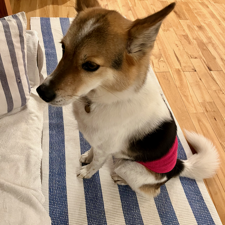 少し散歩して、落ち着いてから腹巻きをさせる。