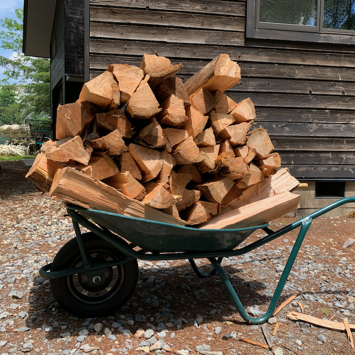 冬季の暖房は薪ストーブだけでまかなうつもりなので、増築予定部分のカラマツは全て伐倒し、早めに薪割りをして、1 年以上乾燥させる必要があります。ということで、最初の冬用の薪だけは購入することになります。