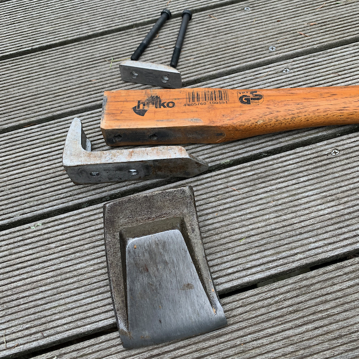 最初の頃、雨晒し薪ラックの上にかけたビニールを押さえるため、割った薪を重しにしていたのですが、強い風が吹くとビニールごと飛んでいってしまい、その都度散らばった薪を拾い集め、飛んでいったビニールを探しに行かなくてはなりませんでした。重しの薪も何年かするとカビが生えてきて、室内で燃やす気にはなれない状態になってしまいました。そこで次は、薪の代わりにレンガをのせてみました。願い通りにビニールが飛んでいくことは無くなりましたが、薪に比べて小さいため、風に煽られたビニールがめくれ上がり、低い外気温のためそのまま固まってしまいました。