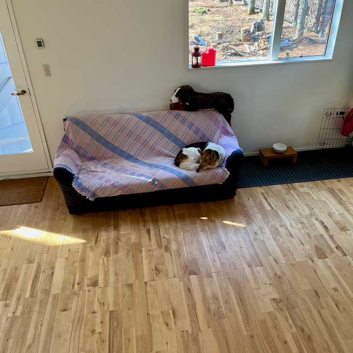 ダッシュ!ダッシュ!ダッシュ! ホテルをチェックアウト。甲斐市の Laza Walk で買い物と昼食後、明野町「くうねるハウス」で ALEX を引き取り。