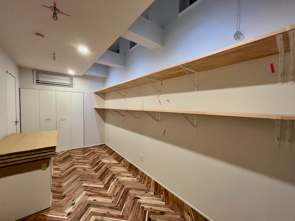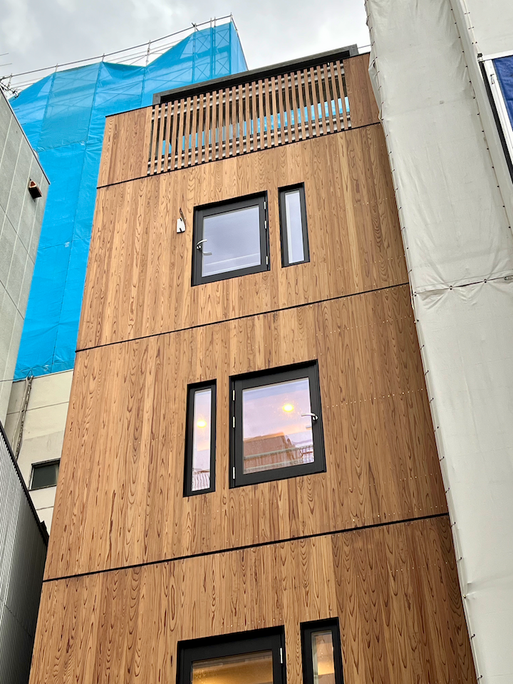 再び事務所に寄ってから、MIDORI.so で「ちょっと早めの忘年会」。事務所裏で建築中の窓がオシャレです。