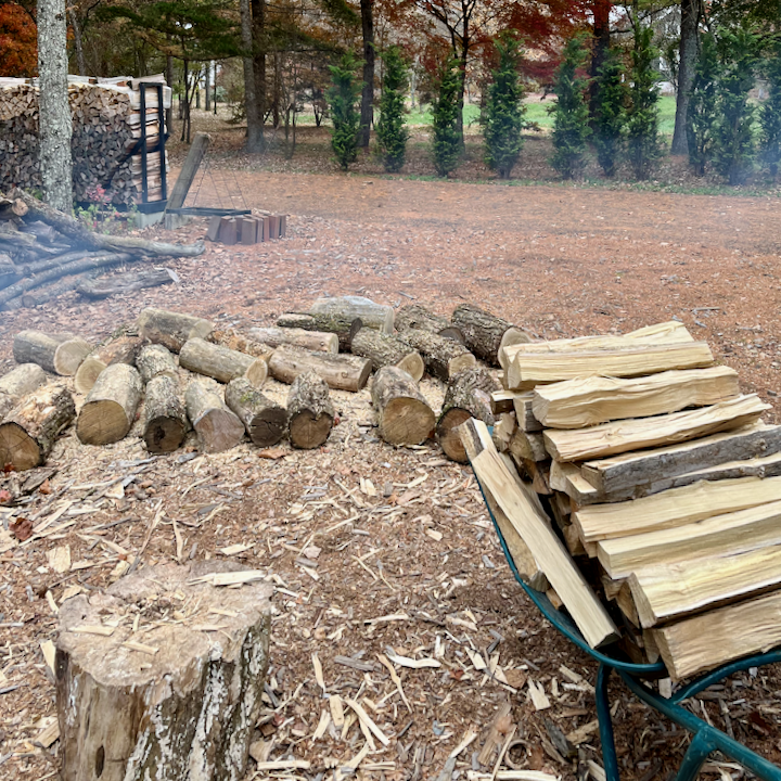 昨日の丸太を割っています。予想通りにスカスカの手応えですが、ありがたく次の次のシーズン用の薪として使わせていただきます。