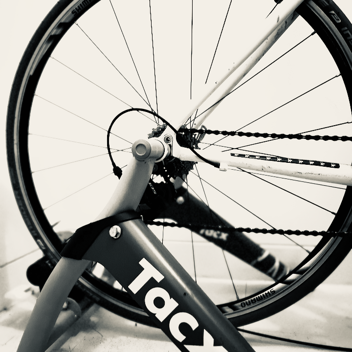 おそらく氷点下に近い気温のガレージで練習。寒くてつい回してしまい、まったく有酸素運動になっていません。
