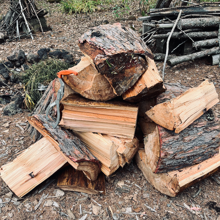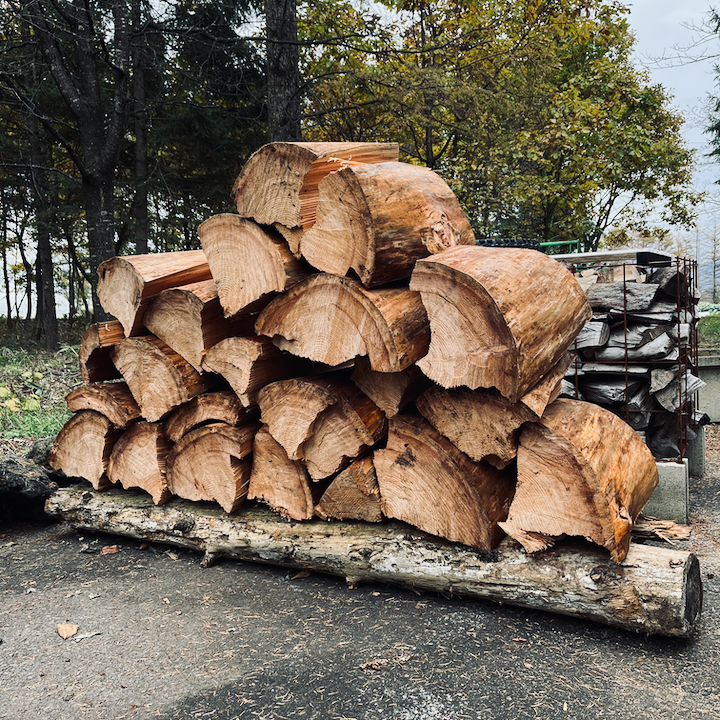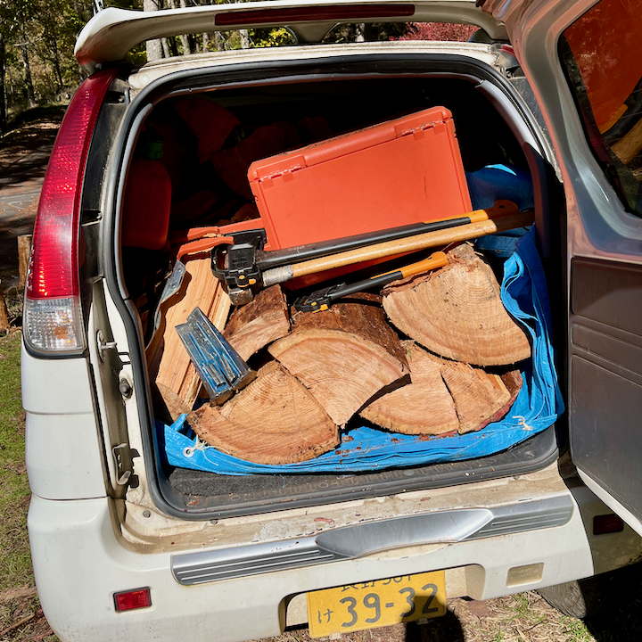 例によって丸太をいただきに。太かったので現場で玉切りし、少し割ってから詰め込む。昼食は寄せ鍋をご馳走になる。