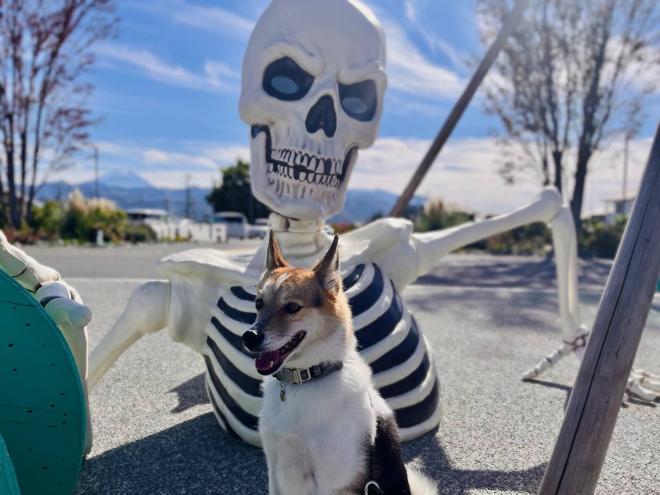 Costco 南アルプス倉庫で買い出し、自分は ALEX とその辺を散歩。fumotto に変なのいたよ。Halloween の生き残り。