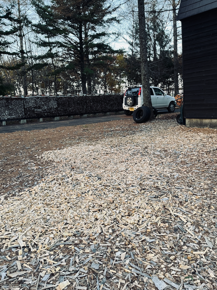 ひとまず溜まっていた木端はすべてウッドチップになりました。