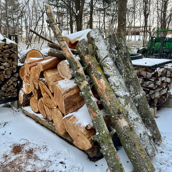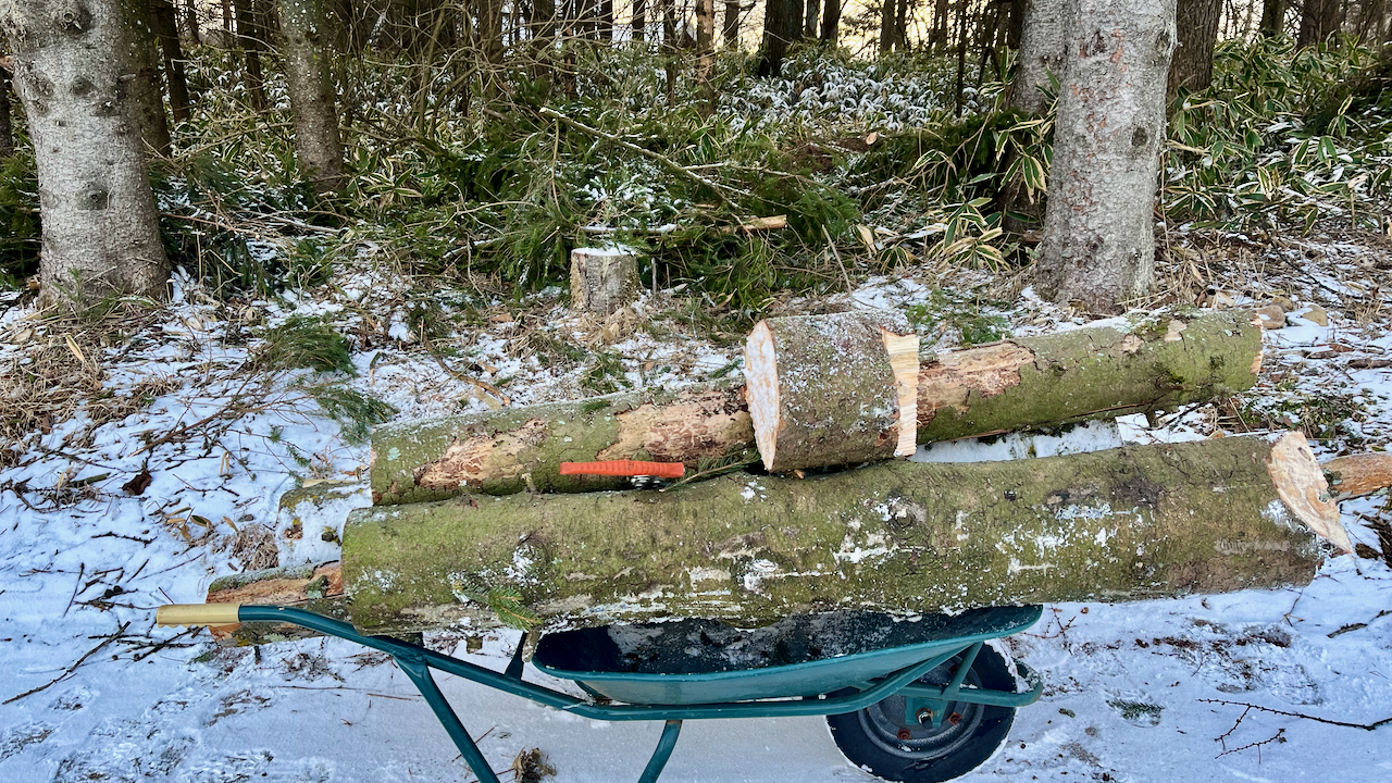 戻ってから近所で伐倒された丸太をネコ一台分いただく。