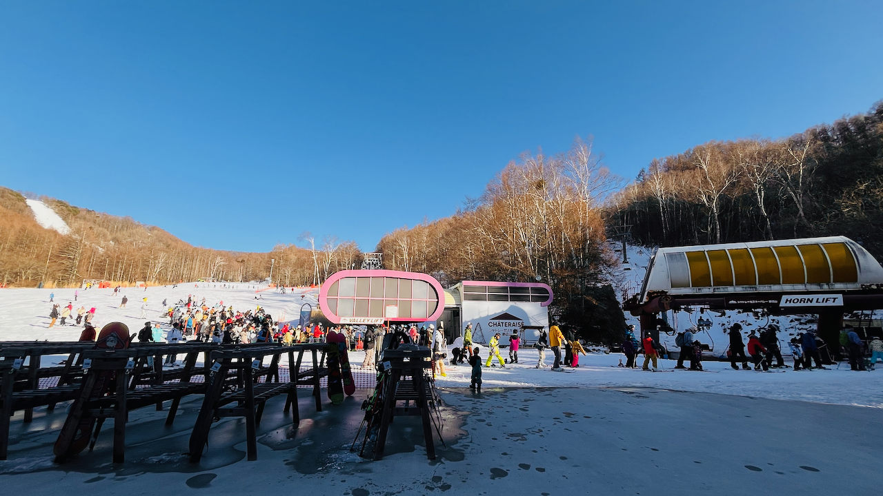 やっとオープンしたアルペンコース、ここまでくれば空いています。